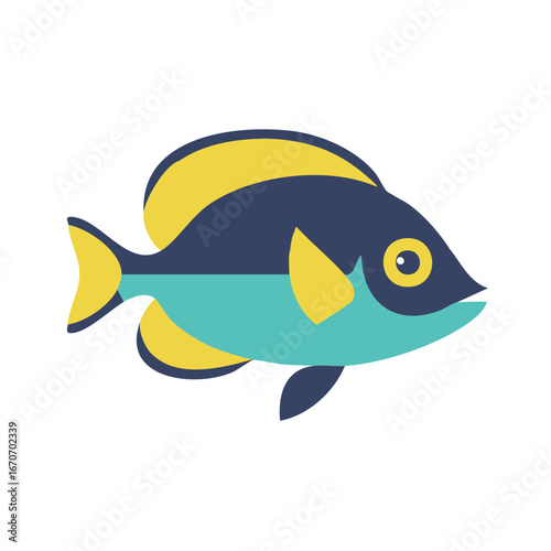fish, tropical, ocean, sea, marin, animal, illustration, aquatic, underwater, swim, blue, yellow, turquoise, simple, modern, graphic, icon, vector, creature, fauna, salt water, reef, species, nature, life, design, artwork, flat, playful, high-coloured, cute, decorative, stylised, profile, 1, small, fin, tail, eye