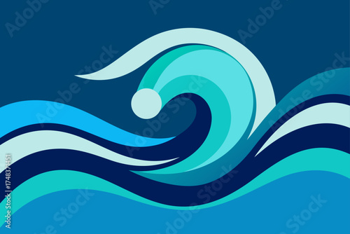 wave, blue, ocean, sea, water, circle, water, design, graphic, art, illustration, abstract, curve, ripple, motion, fluid, crest, foam, surface, pattern, swirl, element, nature, background, shape, symbol, liquid, flow, maritime, teal, turquoise, image, vector, style, stylised, wave, with