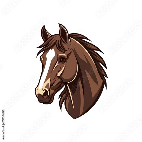 Stylized Brown Horse Head Illustration with Mane and White Facial Marking