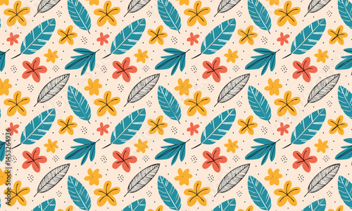 Stylized Colorful Flat Illustration Floral Seamless Pattern