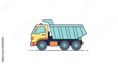 dump, truck, construction, vehicle, delivery, cargo, industrial, transport, illustration, pastel, colours, flat, design, style, graphic, element, automotive, logistic, equipment, machinery, commercial, automobile, engineering, transportation, isolated, modern, cute, artistic, bright, creative, outline, drawing, clip art, pictogram, icon