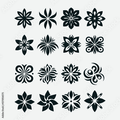 Stylized Flower Icons Collection Various Shapes Floral Symbol Set, Floral Symbol Set Stylized Flower Icons