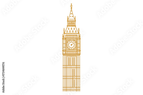 big ben, london, landmark, clock-tower, architecture, building, historic, historical building, british, england, britain, capital, tour tourism, travel, icon, famous, culture, heritage, stylised, gold, gold, illustration, vector, graphic, intricate, detailed, ornate, majestic, grand, elegant, design, transparent, isolated, cut-out, studio shot, clipping path, pure, plain, blank, time, urban, city