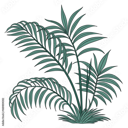 palm, plant, tropical, frond, leaf, green, illustration, stylised, vector, foliage, nature, botanical, growth, vegetation, flora, leaf, tree branch, stem, natural, design, element, isolated, white background, simple, graphic, decorative, organic, jungle, exotic, summer, vacation, paradise, houseplant, indoor plant, ornamental, leafy, green leaf, palm leaf