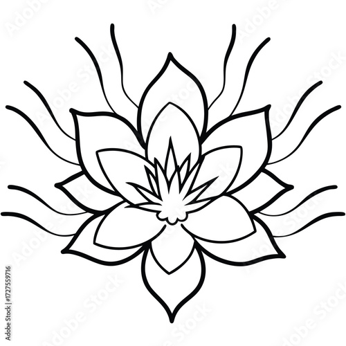 Stylized Lotus Flower Outline With Wavy Petals black and white