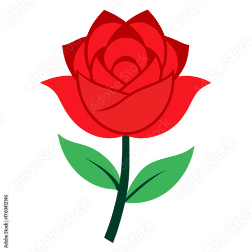 rose, flower, red, green, leaf, stem, bloom, blossom, nature, botanical, floral, garden, plant, beauty, love, romance, symbol, icon, graphic, illustration, design, art, vector, flat, minimalist, simple, clean, isolated, white, background, silhouette, cut-out, decoration, element, spring, summer, romantic, elegant, single