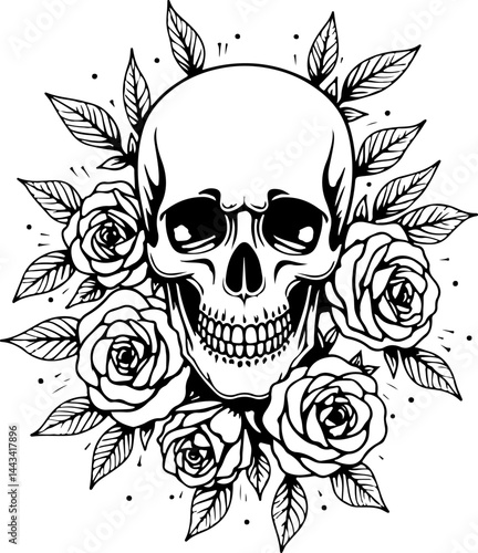 skull, death, grisly, gothic, skeleton, bone, anatomy, skittish, halloween, illustration, vector, graphic, black-and-white, creepy, horror, mystic, esoteric, edgy, punk, rock and roll, biker, rebel, underground, street art
