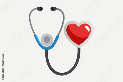 Stylized stethoscope listening to a red heart symbol representing good health and cardiology