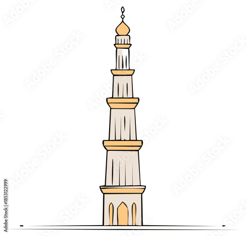 Stylized traditional minaret tower illustration cultural landmark architecture symbol