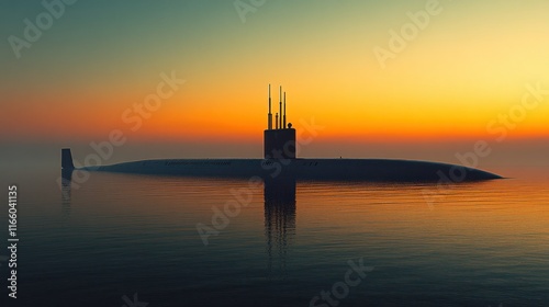 submarine, ocean, sunset, sea, water, vessel, naval, military, defense, underwater, ship, boat, technology, power, warfare, strategic, security, silent, deep, dark, twilight, horizon, dusk, marin, surface, calm, peaceful, solitary, silhouette, powerful, mystery, enigmatic, hidden, depth, immensity, armament, patrol, weapon, nuclear, propulsion, sonar, periscope, force