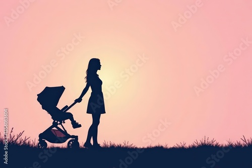 Subtle stroller silhouette repeat on pastel background, cute, seamless, sweet