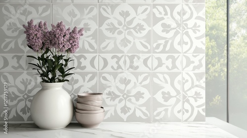 tile, pattern, subtile, detail, vibrant, kitchen, soft, light, indoor, background, vase, flower, countertop, white, gentle, aesthetic, decor, design, home, interior, style, arrangement, fresh, nature, modern, cosy, elegant, clean, bright, art, ceramic, minimal, simplicity, relaxation, spring, harmony, visual, texture, colours, scenery, natural, beauty