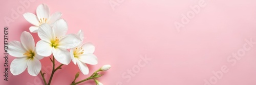Subtle white flowers against a pale pink background, pastel, floral design, feminine