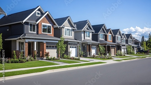 suburban neighborhood with modern homes for sale, highlighting a booming real estate market with high demand for family homes and luxury living