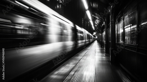subway, train, station, platform, monochrome, speed, blur, motion, transport, underground, city, urban, light, dark, transportation, public, travel, architecture, perspective, steel, rail, greyscale, rushing, fast, dynamic, arrival, departure, transit, infrastructure, track, shadow, corridor, journey, modern, futuristic, abstract, tunnel, metallic, interior, light, pattern, blurred, commute, black, white, grey, long, exposure
