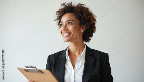 woman, business, businesswoman, beauty, smiling, face, smile, person, hair, people, suit, eye, blond, success, model, lady, looking, professional, happiness, studio, fashion, african american, leader, leadership, manager, executive, hr, human resources, formal, outfit, attire, cheerful, positive, confident, clipboard, job, men at work, employee, employer, occupation, work, career, corporate, entrepreneur, young, adult, portrait, head shot, white background, isolated