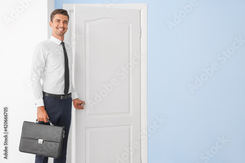 Successful businessman closing office door