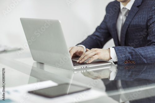 successful businessman working on laptop in the workplace.