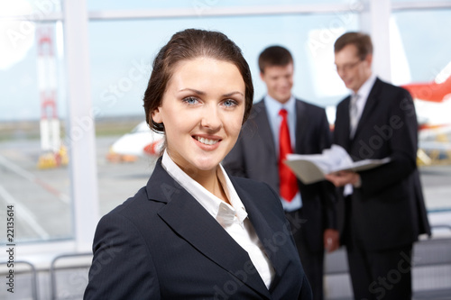 business, people, businessperson, person, businesswoman, woman, female, beautiful, inside, arrival, departure, commercial, transportation, successful, confident, young, adult, attractive, contemporary, smart, caucasian, executive, aerodrome, suit, indoor, looking, smiling, happy, happiness, businessman, man, male, portrait, lady, smile, positive, beauty, black, boss, elegant, girl, corporate, pretty, professional