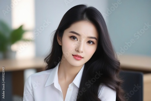 Successful Female Leader Standing in Corporate Environment