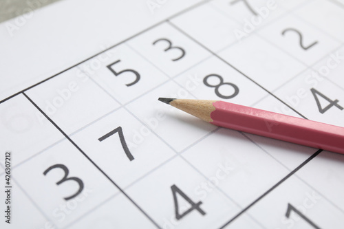 closeup, view, game, brain, sudoku, crayons, background, object, pastime, paper, sheet, hobby, white, difficulty, puzzle, intelligence, solving, genius, leisure, fun, playing, logic, number, row, play, thinking, solution, entertainment, mental, column, japanese, mind, brainstorm, grid, placement, wallpaper, number, mathematic, missing, rebus, square, teaser, fill, brain teaser, problem, popular, earth, mathematic, grid, place