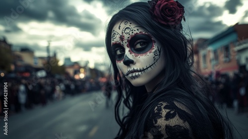 halloween, skull, girl, sexy, mexico, tattoo, make-up, mexican, mask, voodoo, death, fantasy, zombie, character, forest, fairy, devil, horror, evil, goth, flower, beautiful, white, female, decoration, daemon, beauty, make-up, day of the dead, silk hat, nightmare, face paint, creepy, curly, one person, red rose, studio shot