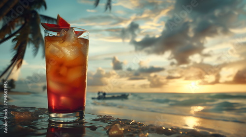 Summer alcoholic drink close-up on the beach background.