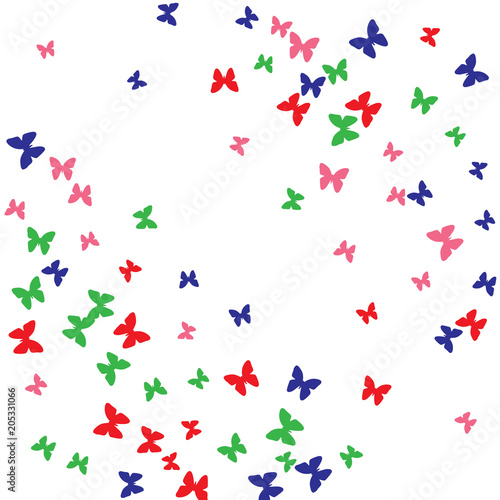Summer Background with Colorful Butterflies. Simple Feminine Pattern for Card, Invitation, Print. Trendy Decoration with Beautiful Butterfly Silhouettes. Vector Background with Moth