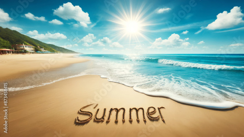 summer, beach, ocean, sand, wave, sunny, clear sky, tropical, vacation, holiday, sea, shoreline, summer getaway, sandbeach, coastal, water, relaxing, peaceful, nature, horizon, blue skies, sun ray, sunlit, tropical paradise, serene, scenic, get-away, tranquil, summer fun, beach vacation, beach view, sunny day, leisure, travel, tour tourism