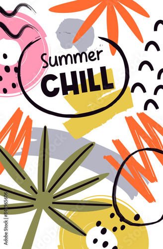 summer, vacation, tropical, beach, sea, relaxation, rest, poster, hand, drawn, resort, brush, drawing, abstract, chill