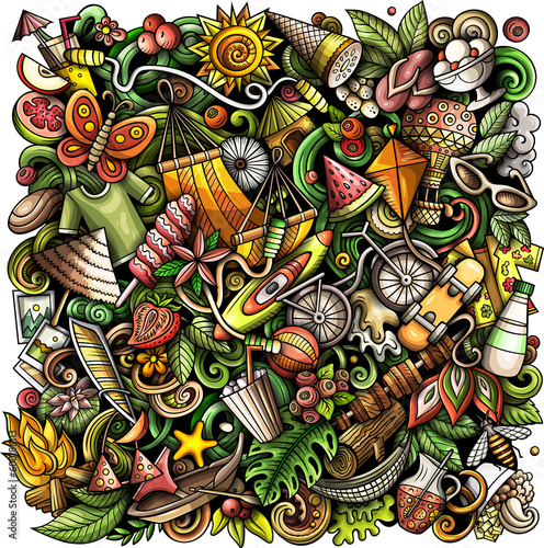 summer, activity, season, leisure, summer, lifestyle, vacation, nature, camping, picnic, food, holiday, joy, park, recreation, rest, vale, village, weekend, cartoon, doodle, design, illustration, funny, decorative, background