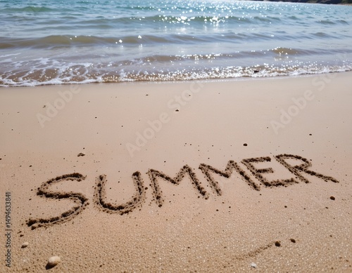 Summer inscription etched on a sandy beach coastal view natural environment tranquil scene