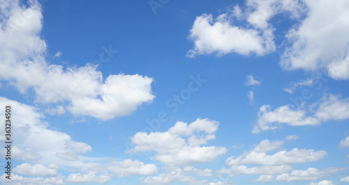 Summer sky is bright blue. There are clouds floating through. Feel relax when looking. See the sun on the sun.