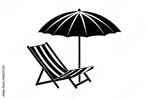 Summer Vacation Beach chair and umbrella Vector Silhouette