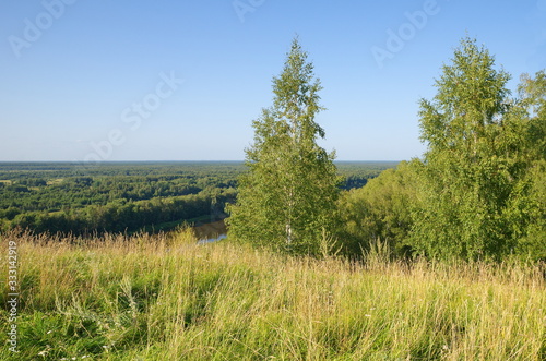 Summer view from Lysaya mountain on the Klyazma river. Gorokhovets, Vladimir region, Russia