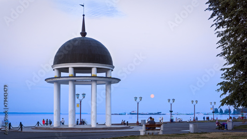 city landscape, summer night, city, lake, lakeshore, summer, rotunda, karelia, night, moon