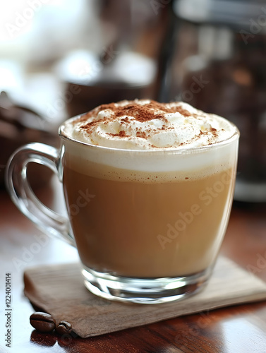 Sumptuous Cappuccino with Whipped Cream and Sprinkled Spice in Glass Mug : Generative AI