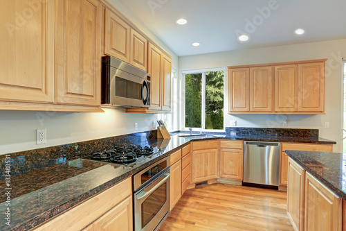 kitchen, interior, room, apartment, home, house, flat, architecture, bright, new, clean, shiny, elegant, estate, design, cabinet, hardwood, wood, furnished, furniture, stove, white, wall, ceiling, appliance, modern, refrigerator, northwest, sink, nook, breakfast, chandelier, stainless, steel, top, stool, large, window, epicure, countertop