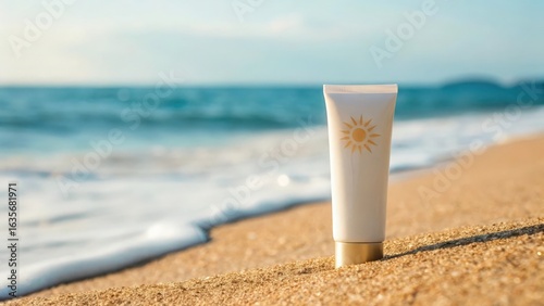 Sun icon with wave lines and cream splash — beach day sun protection illustration