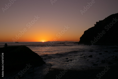 sunset, sea, ocean, beach, sky, water, landscape, sun, coast, nature, sunrise, dusk, horizon, evening, rock, orange, wave, mountain, dawn, beautiful, cloud, cloud, dark, island, night