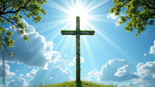 sun ray, cross, hilltop, sky, cloud, silhouette, beam of light, inspirational, faith, serene, peaceful, landscape, divine, spiritual, jesus christ
