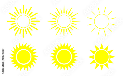 sun, icon, summer, vector, symbol, set, weather, sunlight, signs, collection, illustration, yellow, solar, light, design, element, hot, heat, sunbeam, orange, bright, star, sunset, art, nature