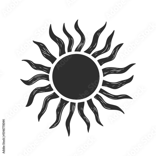 Sun With Wavy Rays Silhouette Illustration. Symbolizing Energy And Warmth. Isolated Vector Illustration