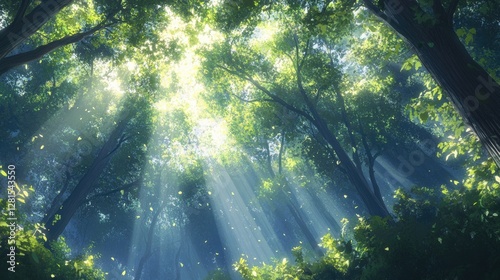 Sunbeams Filtering Through Lush Forest Canopy, A Serene Nature Escape