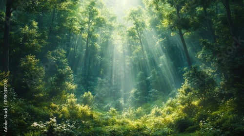 forest, tree, sunlight, green, nature, wood, mystical, magical, enchanted, serene, peaceful, calm, tranquil, lush, vibrant, shady, dappled, light, ray, beam, atmosphere, dreamy, foggy, misty, underbrush, canopy, leaf, path