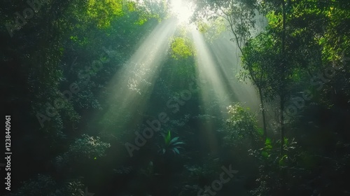 sunbeam, sunlight, forest, canopy, tree, leaf, green, lush, jungle, tropical, nature, light, ray, shadow, mist, fog, mystical, atmosphere, serene, peaceful, tranquil, calm, vibrant, deep, dark, mysterious, magical, enchanting, wilderness, ecology, environment, biodiversity, growth, life, oxygen, ecosystem, plant, foliage, branch, wood