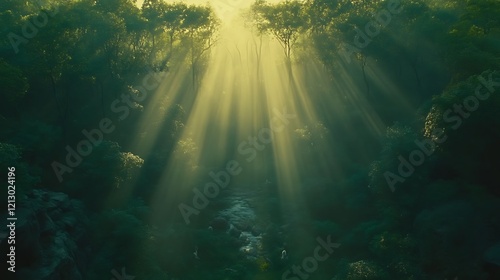 forest, sunbeam, sunlight, tree, green, leaf, canyon, nature, wood, mystical, magical, serene, peaceful, tranquil, calm, quiet, solitude, mystery, secret, hidden, shadow, light, ray, beam, aethereal, dreamy, atmosphere, mood, landscape, scenic, vista, view, river, water, stream, rock, stone, lush, vibrant, deep, dark, fog, mist, morning