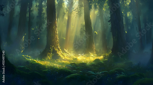 Sunbeams in a Misty Forest: A Magical Landscape