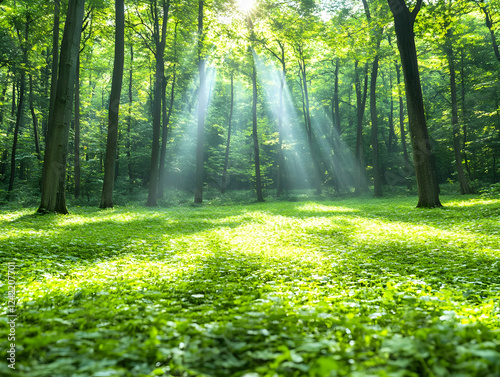 forest, sunbeam, green, tree, nature, sunlight, wood, leaf, landscape, spring, summer, background, environment, ecology, scenery, park, garden, plant, light, beauty, scenic, vibrant, peaceful, calmness, serenity, calm, refreshing, lush, timberland, canopy, flora, vegetation