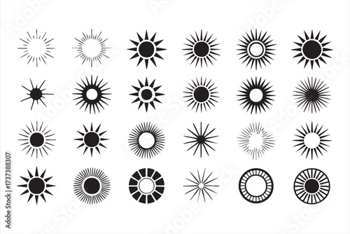 Sunburst Ray Icon Collection in Black and White Minimalist Design